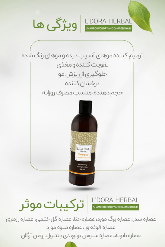 شامپو گیاهی مناسب موهای خشک و آسیبدیده لدورا هربال، یک محصول حرفهای است که برای موهای خشک و آسیبدیده طراحی شده است. عصارههای گیاهی و ترکیبات موجود در این محصول گیاهی با ملایمت مو را تمیز، بازسازی، آبرسانی و تغذیه کرده و آسیبهای ناشی از خشکی مو را رفع میکند. این شامپو با ترکیبات گیاهی خود مانند عصارههای سدر، برگ مورد، حنا، گل ختمی، رزماری، آلوئه ورا، میوه مورد، بابونه، سبوس برنج، دیپنتنول و روغن آرگان تأثیر شگفتانگیزی در لطافت، درخشندگی و تقویت مو دارد.