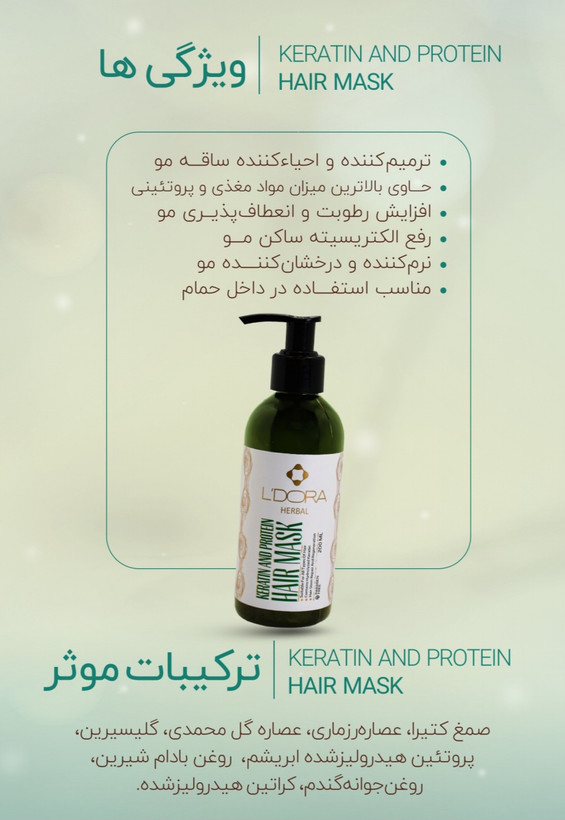 ماسک پروتئینه و کراتینه موی سر لدورا هربال، یک محصول بینظیر برای مراقبت حرفهای از مو بهشمار میرود. ماده مؤثرههای منحصربه فرد موجود در این ماسک، تأثیر فوقالعادهای بر سلامت، ترمیم و تقویت ساقه مو دارد. ماسک پروتئینه و کراتینه موی سر لدورا هربال از وز و گرهخوردگی موها پیشگیری کرده و موها را نرم و ابریشمی میکند. این محصول، با داشتن پروتئینهای هیدرولیزشده ابریشم و کراتین، ترکیبات آنتیاکسیدانی، عصارهها و روغنهای گیاهی مو را پروتئینه و کراتینه میکند.